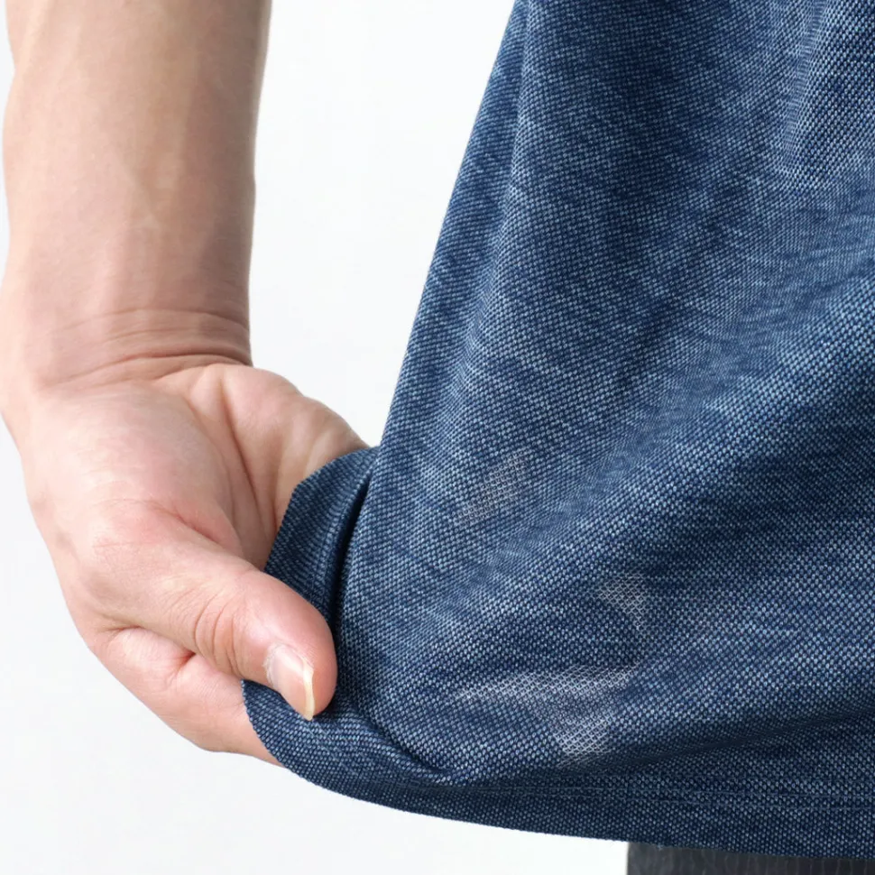The elegant sheen and indigo colour are well combined to create a casual yet classy finish. The dry feel with excellent breathability makes it comfortable to wear even in hot weather.