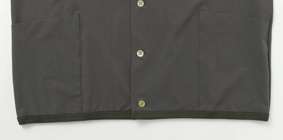 The front buttons feature shell buttons for a luxurious feel. The sleeves and hem are ribbed with cut-and-sewn fabric to give sharpness and accentuation.