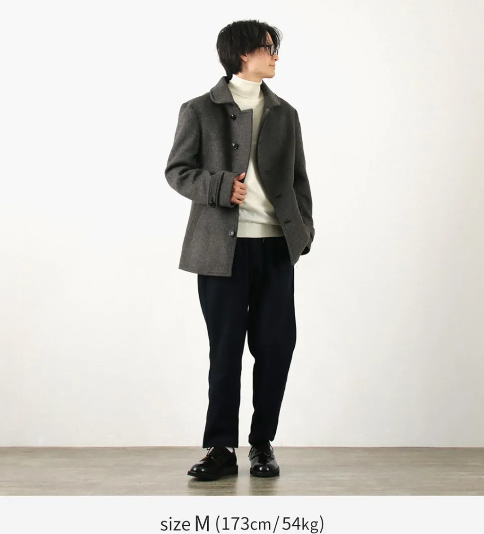 The fabric chosen is the premium melton fabric produced in Bishu, one of Japan’s leading wool textile regions. This fabric has a substantial thickness, providing excellent insulation, and is known for its lightweight and soft feel.