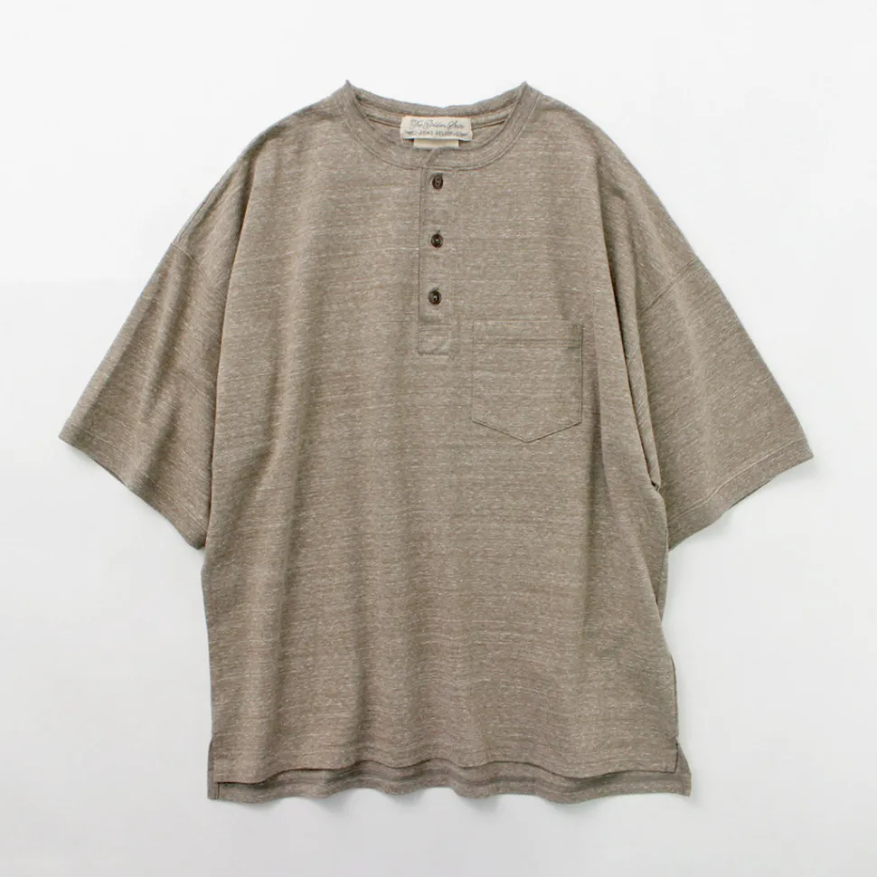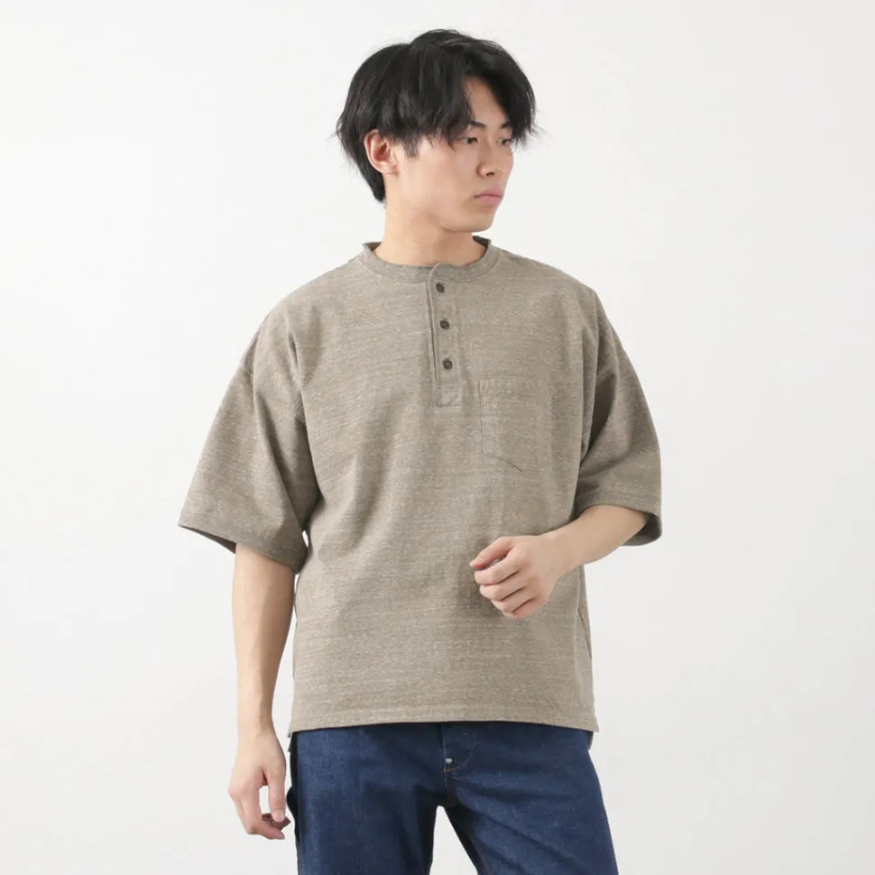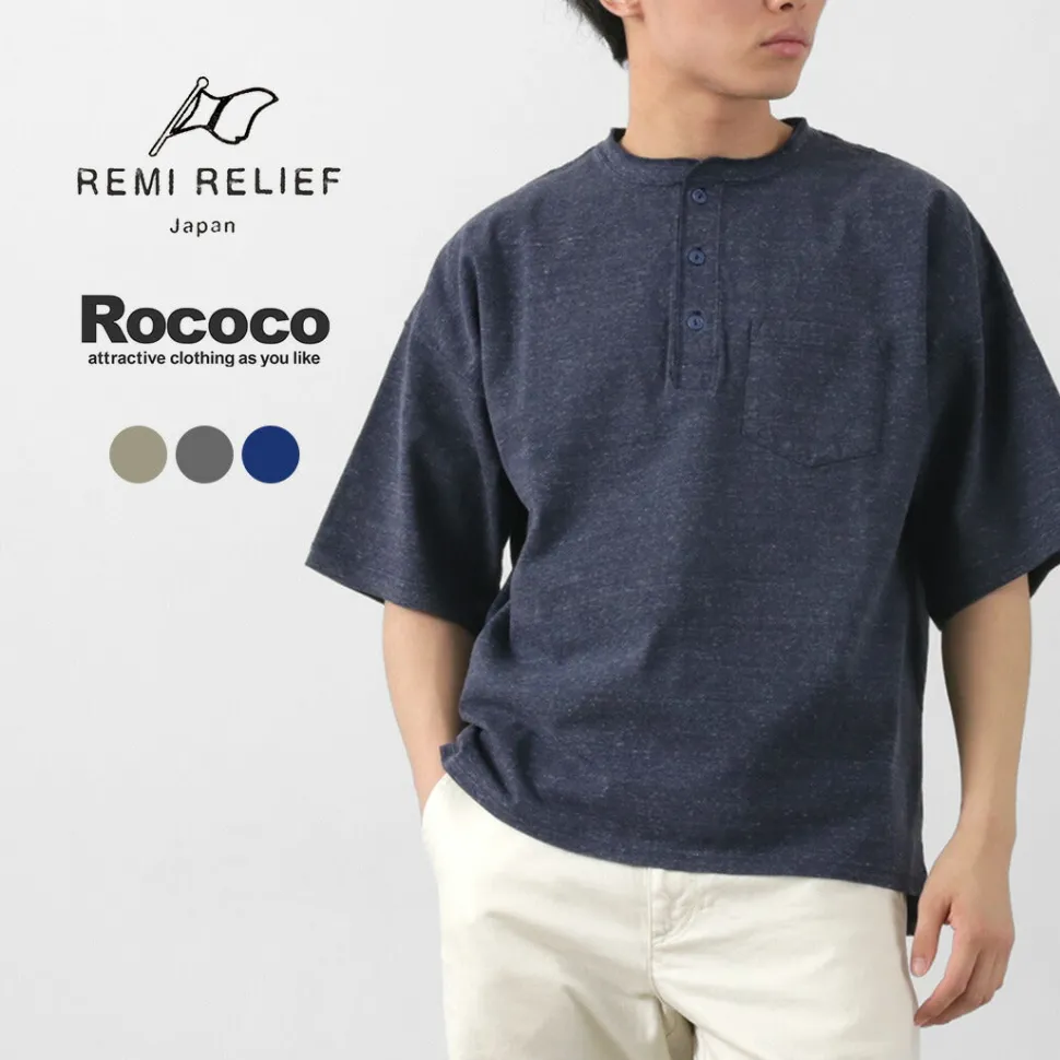 This short-sleeved Henley neck pocket T-shirt is a special-order item for ROCOCO, which was designed and produced by our buyers after they came across a high-quality dead stock fabric that was lying dormant in a Remi Relief warehouse.