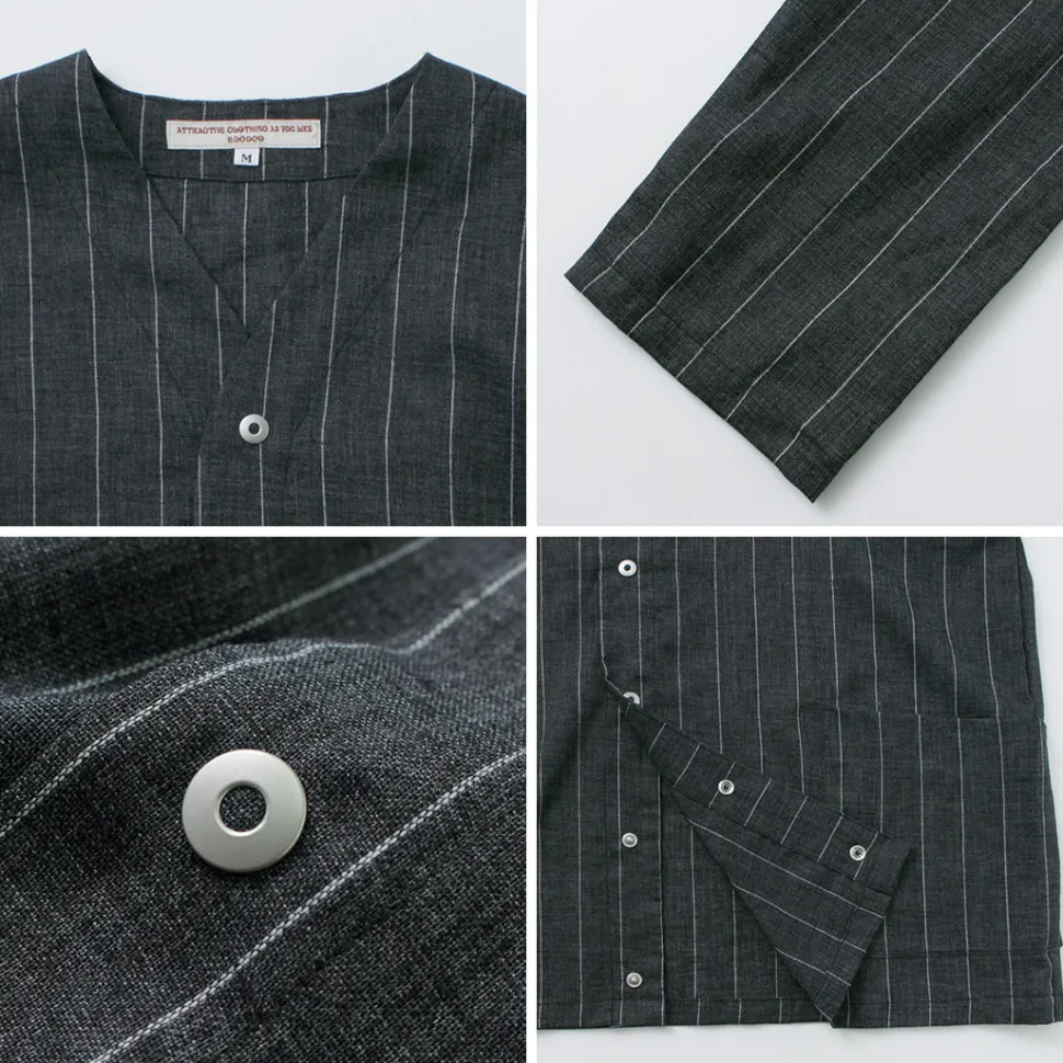 Thin. The fabric is light enough to be easily woven in hot weather, while the beautiful silhouette gives it an elegant look. As it is a piece that can be easily woven over an inner layer, it is also recommended as protection against air-conditioning and sunburn in the summer.