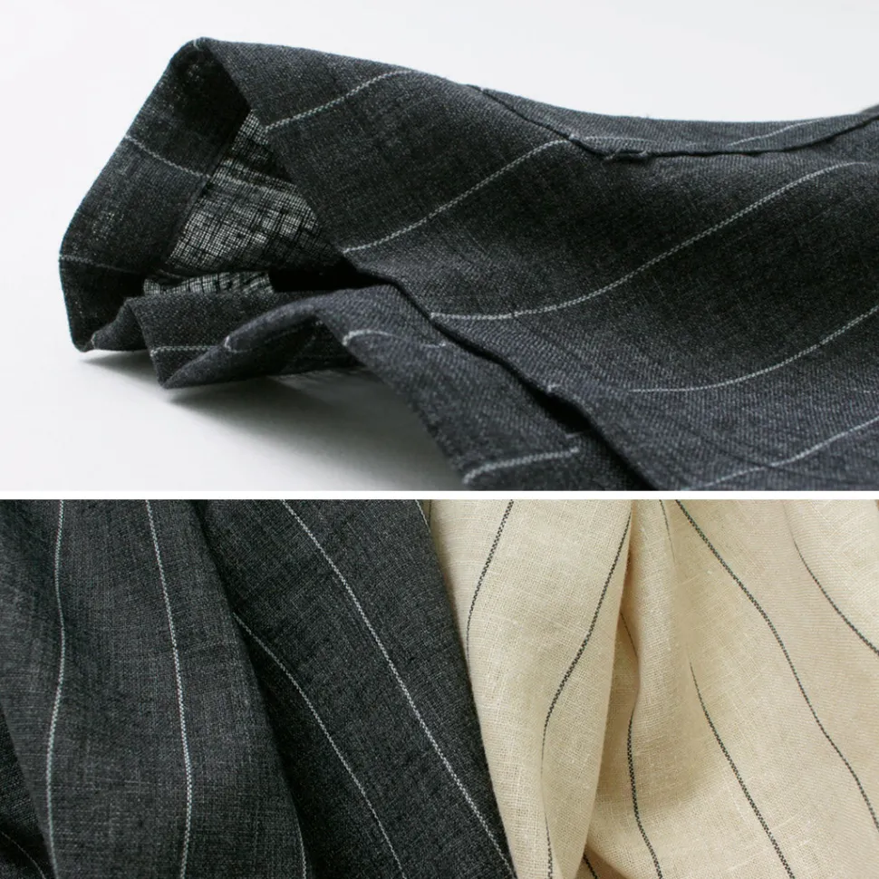 The combination of polyester with linen, which has a good sheen and crispness, makes it wrinkle-resistant. The fabric is lightweight and has a falling feel, making it very fresh and comfortable to wear.