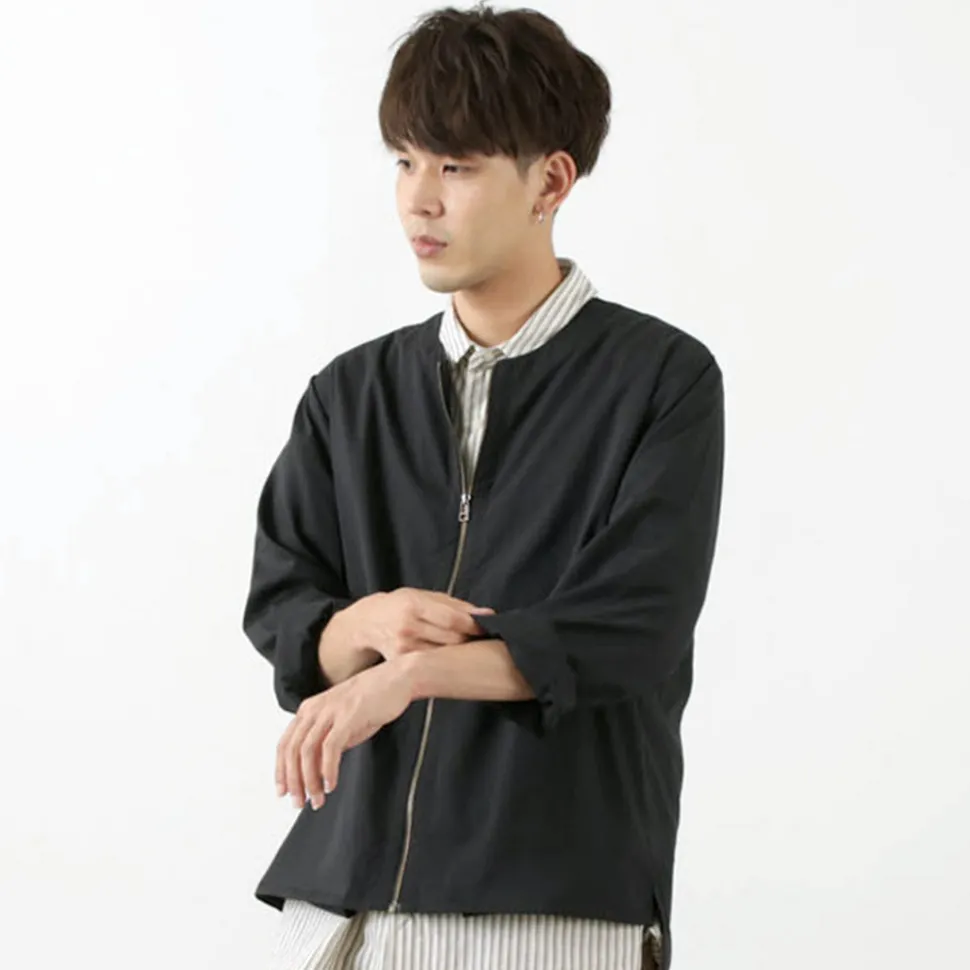 The front is zipped up for easy on and off. The hem with a difference between the front and back allows the inner lining to be seen when viewed from the front, creating a loose look. Pockets on both sides for extra functionality. Also features cufflinks with a chic black bow shell-style design.