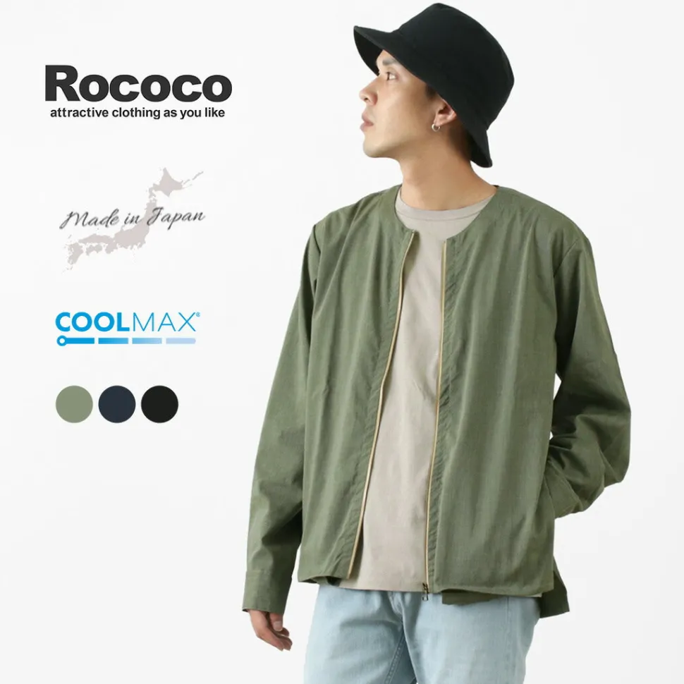 The cardigan is made from a hybrid fabric blended with ramie, a type of hemp, and COOLMAX yarn, a functional material. It combines excellent water absorption, quick-drying and breathability, making it comfortable even in summer. The items of ROCOCO are made in Japan, and everything from the fabric to the sewing is produced at a factory in Japan with a solid production background. These items have achieved both high quality and cost-effectiveness.