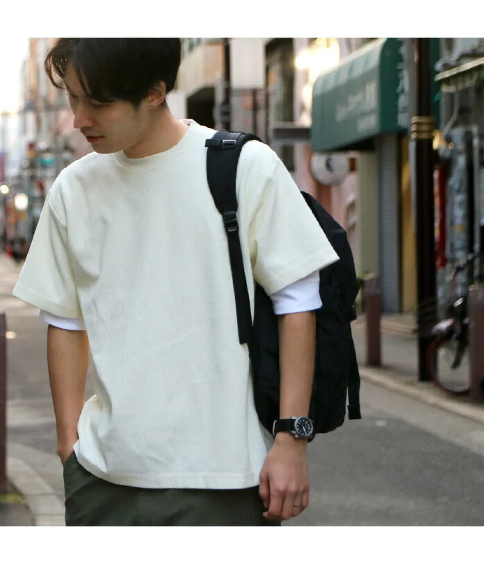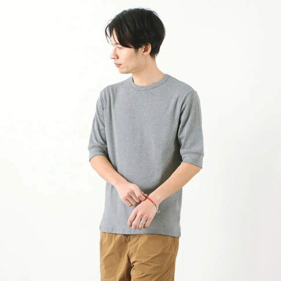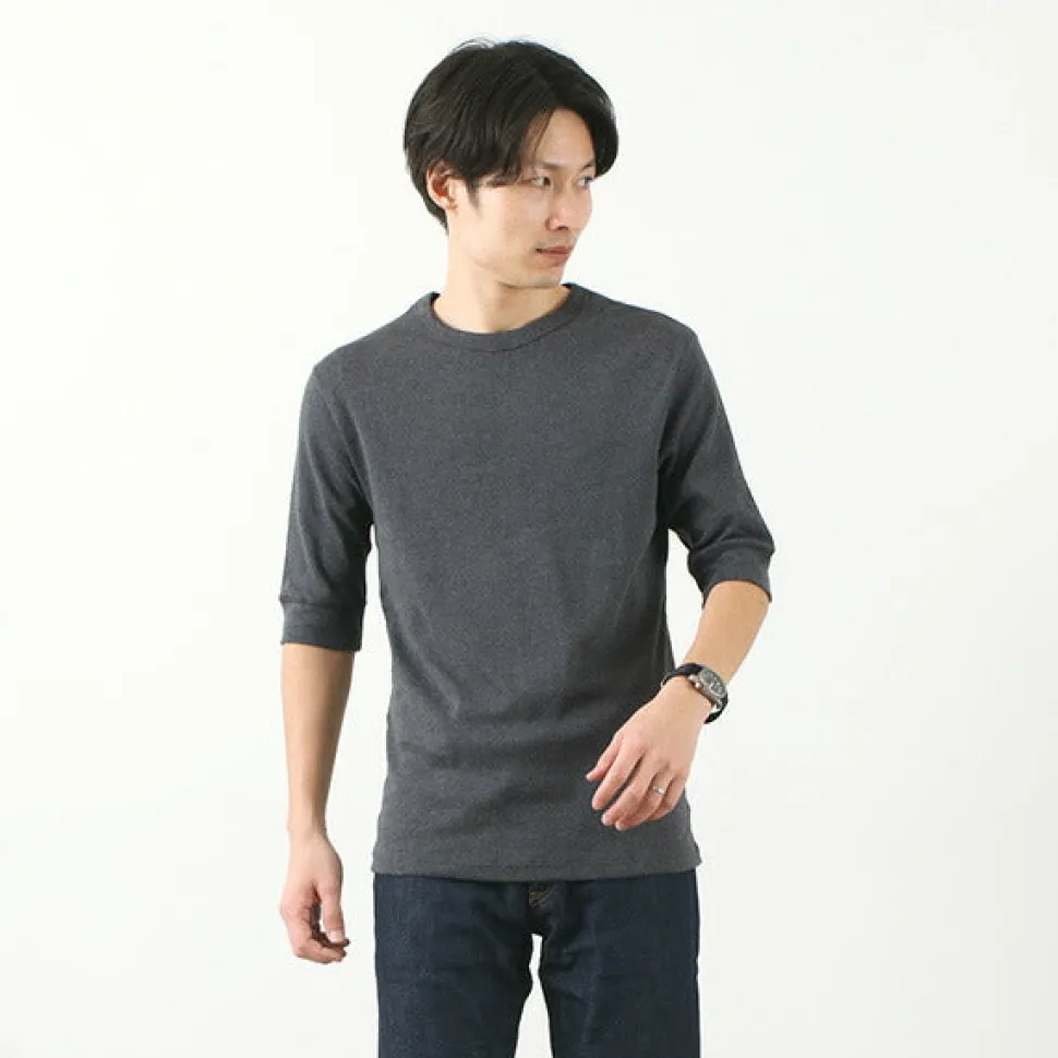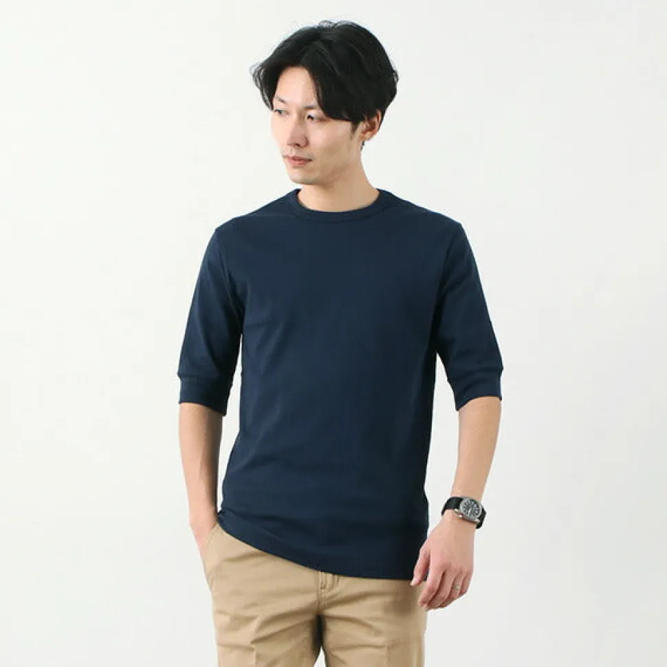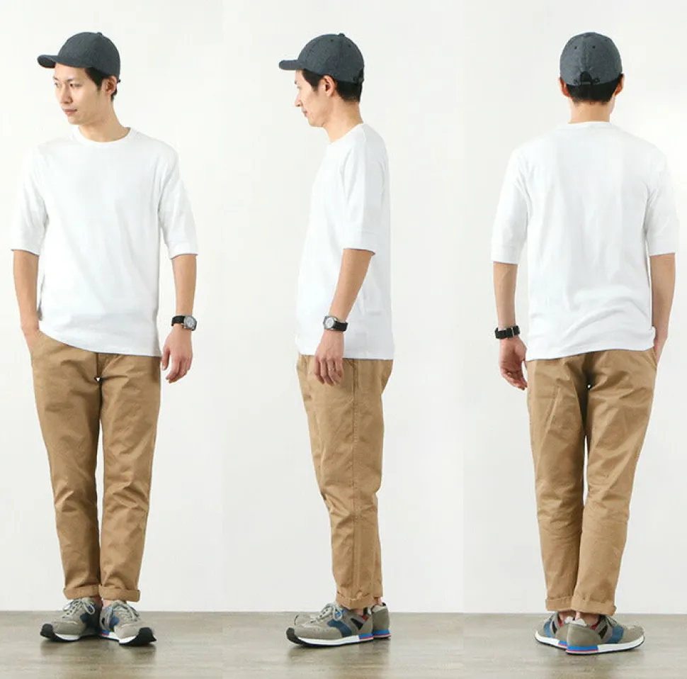 This crew neck t-shirt has a high elasticity and fits well to the body. The wide ribbing on the sleeves, typical of military underwear, gives this t-shirt a classic look that can be worn on its own or layered with other items or as an inner layer for autumn and winter. Made in France There are many famous cut and sew brands such as ORCIVAL and PETIT BATEAU in France, and there are many high quality sewing factories. ROCOCO’s cut-and-sew items are produced with such background. The sewing of this item is done carefully at the factory which has undertaken famous brands such as QUOTIDIEN.