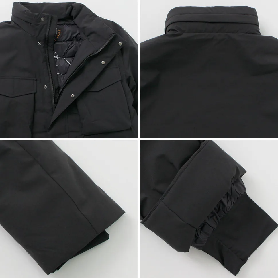 This synthetic down jacket is based on the “M-65,” a masterpiece outerwear representing the U.S. Army, as its design source.