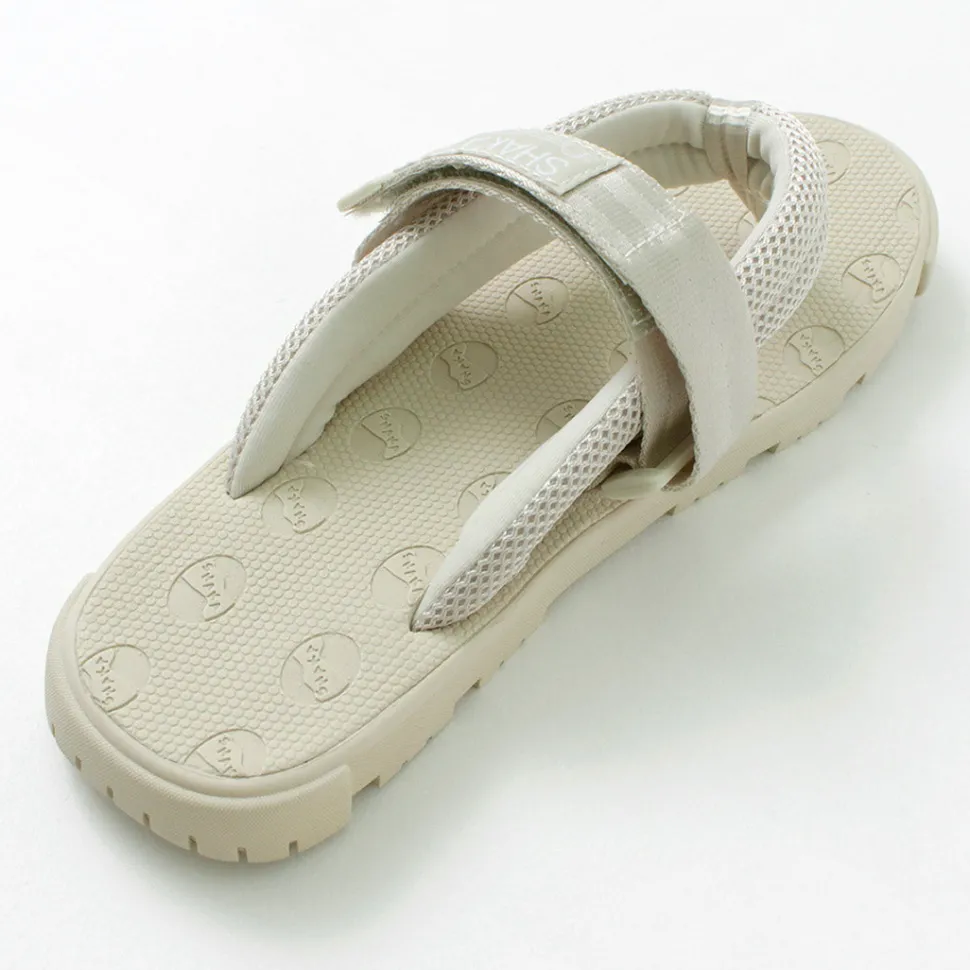 Double mesh is used for the snout for a gentle feel against the skin. One strap on the instep overcomes the weak point of thong sandals in terms of holding the foot in place. By enhancing the fit, it realizes a comfortable walk from outdoor to city wear.