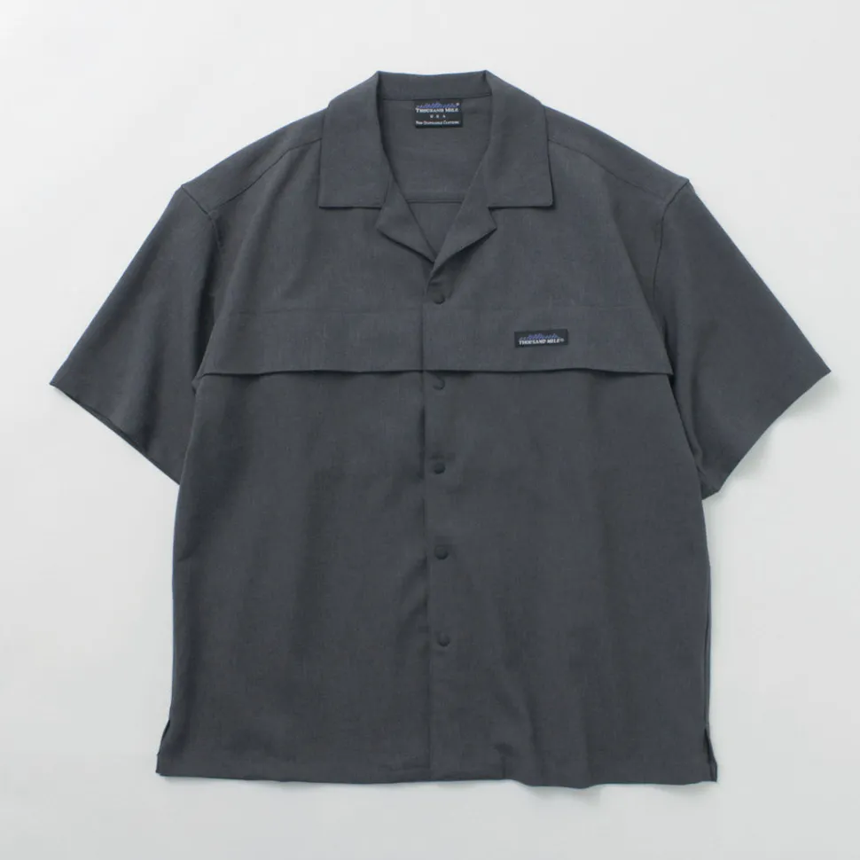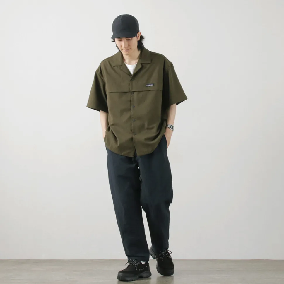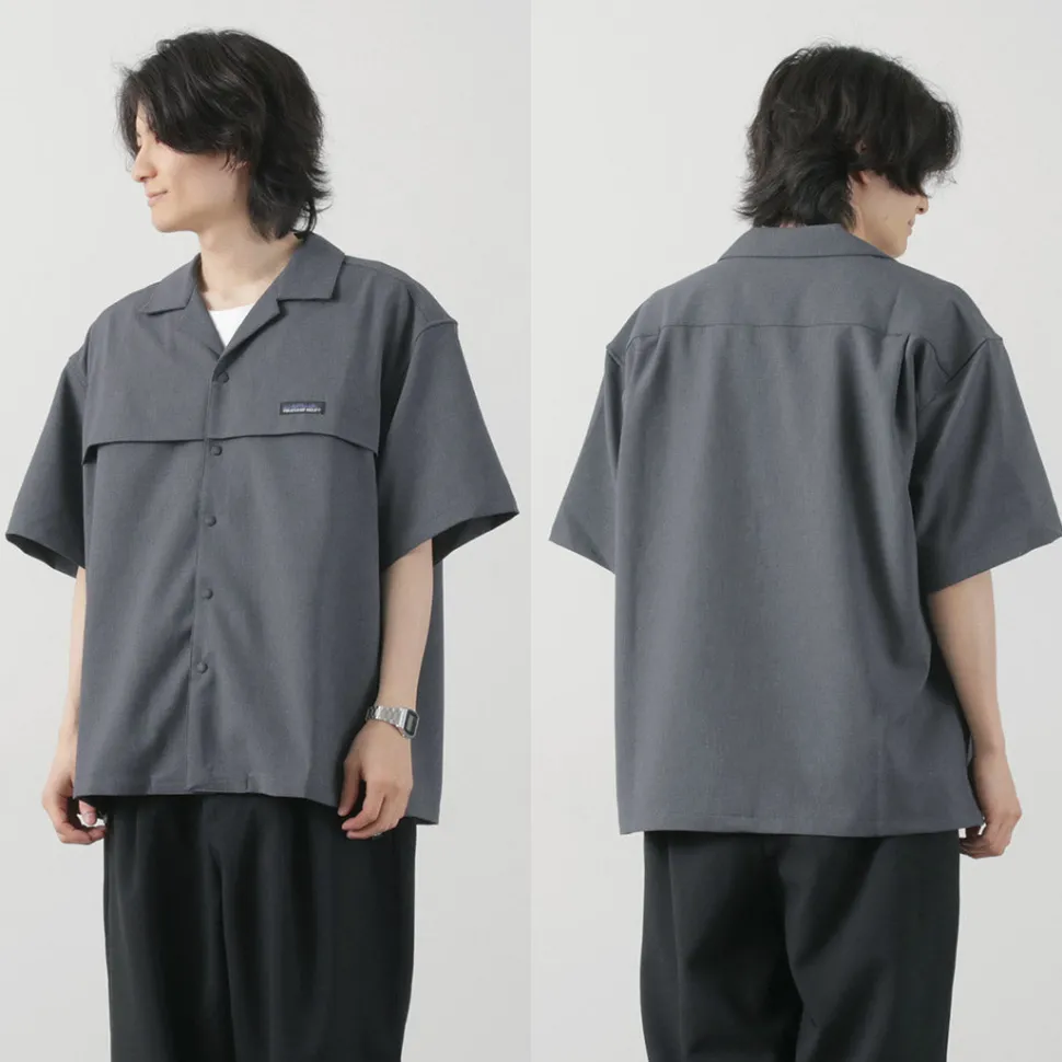 This open-collar shirt has a crisp, linen-like dry feel that is refreshing. The functional fabric with excellent air permeability and UV blocking functionality provides a comfortable fit even during the sweaty season.