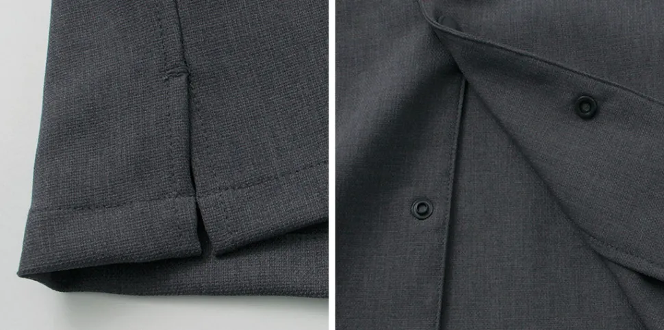 With snap buttons, it’s easy to put on and take off. Slits on both sides enhance the relaxed feel.