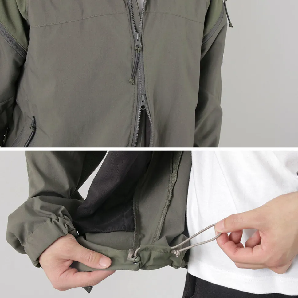 ECWCS is a system of combat clothing developed by the U.S. military, inspired by the layering of outdoor clothing, that responds to various climates by combining parkas, innerwear, and liners, etc. The first generation “GEN1” was introduced in 1985, the second generation “GEN2” since 2006, and the current third generation The “GEN3” system categorizes the clothing from cold protection level 1 to 7. This item is a water-repellent and moisture-permeable soft shell, which is classified as GEN3 level 5.