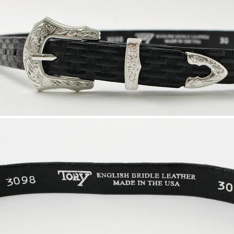 This leather belt is full of the attention to detail of a brand founded as a harness maker. This item features thick, heavy bridle leather with a stamped pattern and a decorative buckle with a western look.