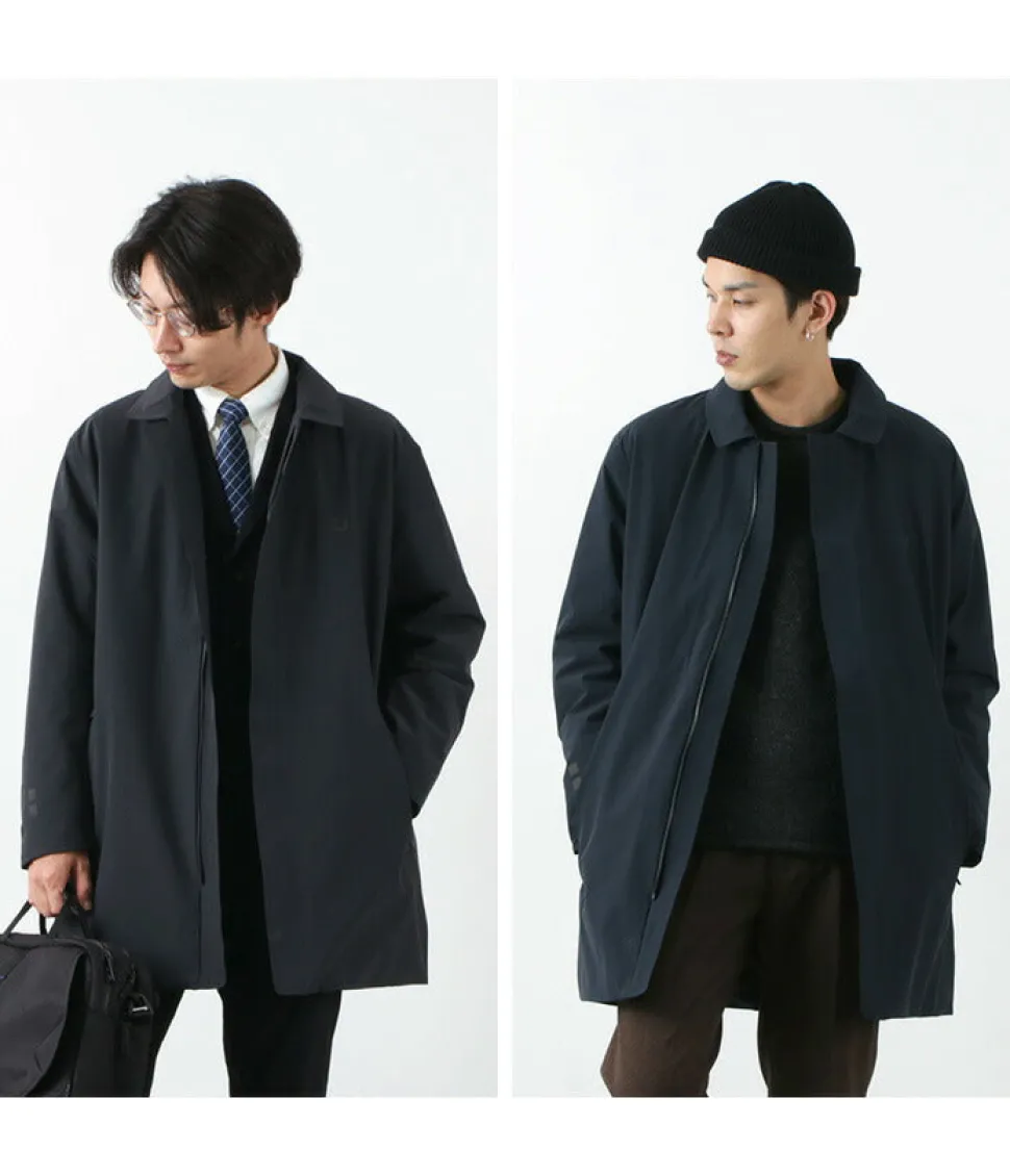 It exudes an elegant design that creates a dress-like adult atmosphere.Featuring PrimaLoft on the inside and a hybrid shell with waterproofness and stretchability, along with several pockets for excellent storage capacity.Creating Smart Urban Wear Using Outdoor Technology
