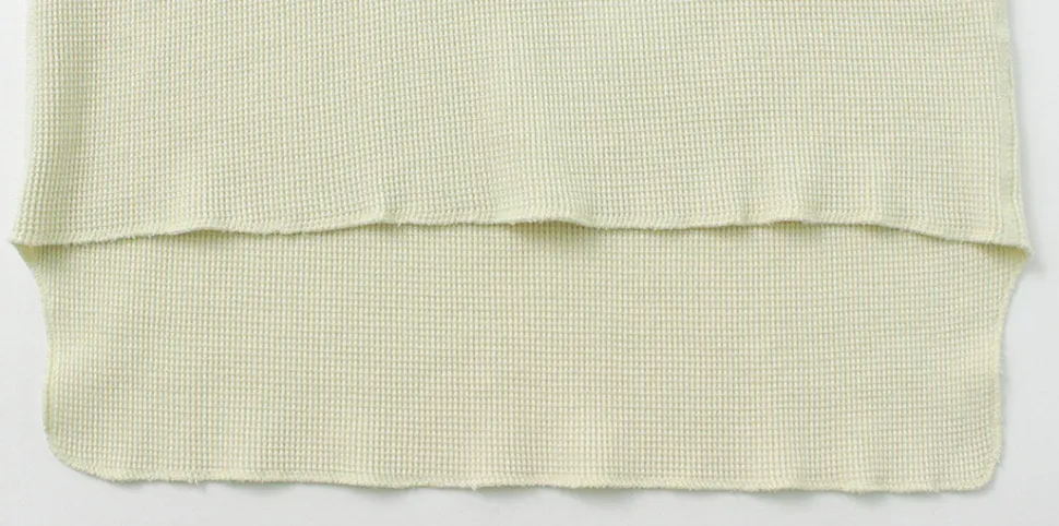 The material used is American cotton. The finishing is done in Japan at a factory specialising in cut and sewn, using high quality thermal fabrics. It has a smooth texture with moderate thickness and durability. The comfortable feel against the skin is addictive.