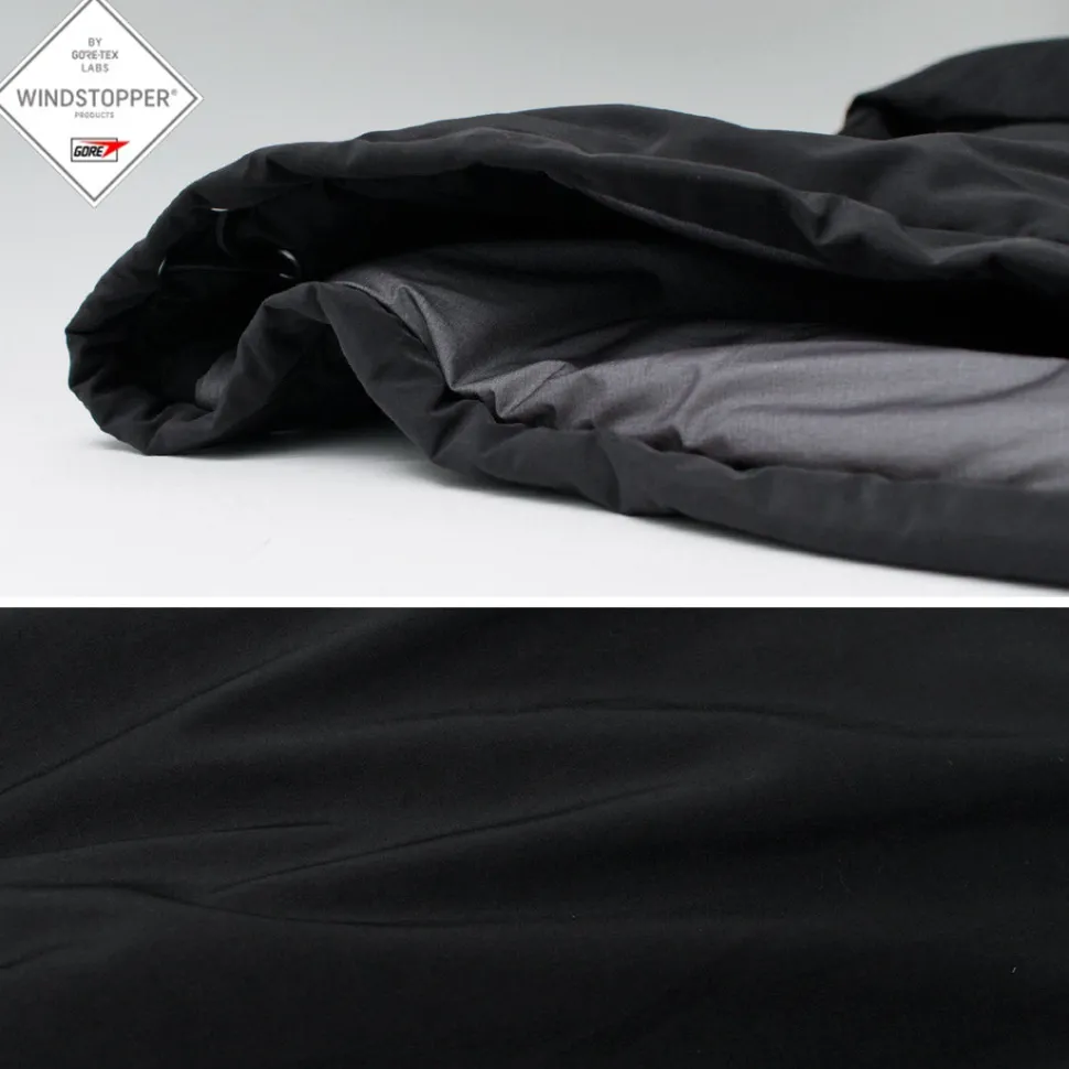 Crafted from “GORE-TEX WINDSTOPPER” polyester/nylon fabric, this outer shell offers lightweight durability, water resistance, breathability, and excellent windproof performance. The subtle gloss adds a refined touch.
