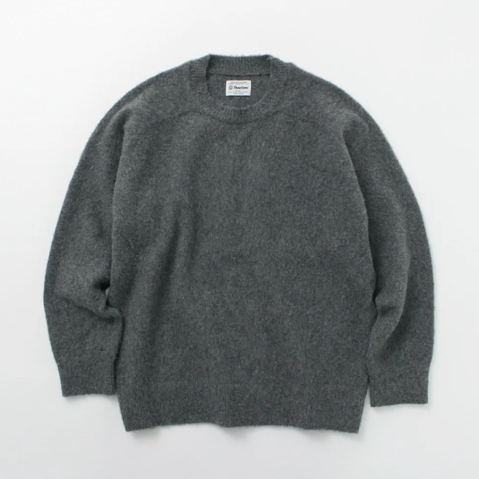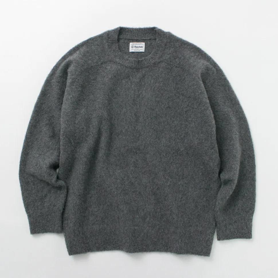 The silhouette is created with a pattern that evokes vintage sweatshirts. It has the right amount of room for wearing coats or jackets, and a moderate volume, making it a luxurious wool knit that can be enjoyed as a single piece or an inner layer in various ways.