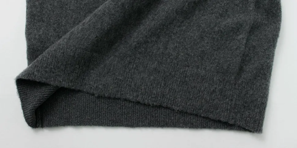 By using a plant called “Teasel” to apply a brushing process, it creates a soft touch that cannot be achieved with metal needles, resulting in a meltingly smooth texture. The simple design, devoid of unnecessary decorations, makes it a basic piece suitable for various occasions.