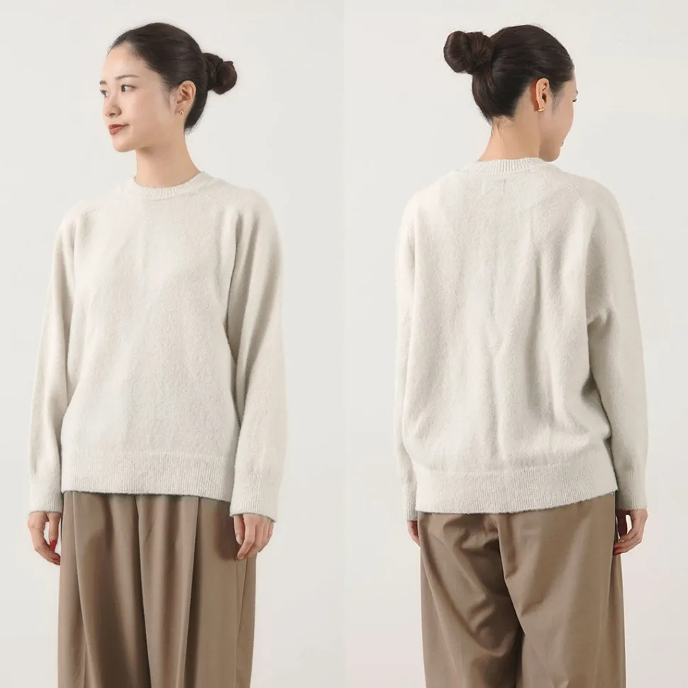Introducing the Circle Knit Pullover from YONETOMI NEW BASIC, which has a delicate and fluffy texture that exudes a sense of seasonality.